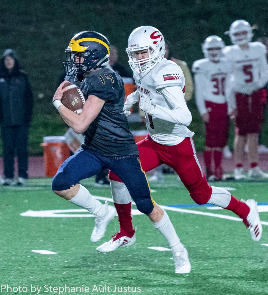 Bellevue scored nine rushing touchdowns behind its powerful offensive line, en route to a convincing 66-33 win against Snohomish on Nov. 9 at Bellevue Memorial Stadium. The Wolverines, who improved their overall record to 11-0, will host the Yelm Tornados in the Class 3A state quarterfinals at 1 p.m. on Nov. 17 at Bellevue Memorial Stadium.