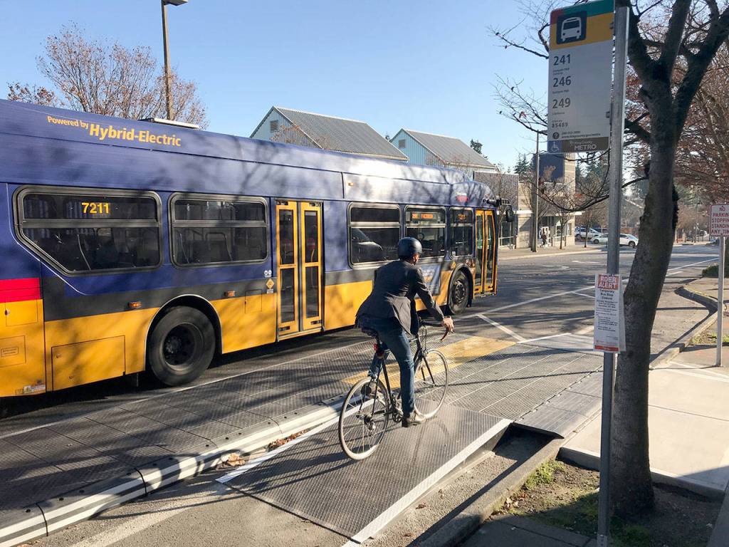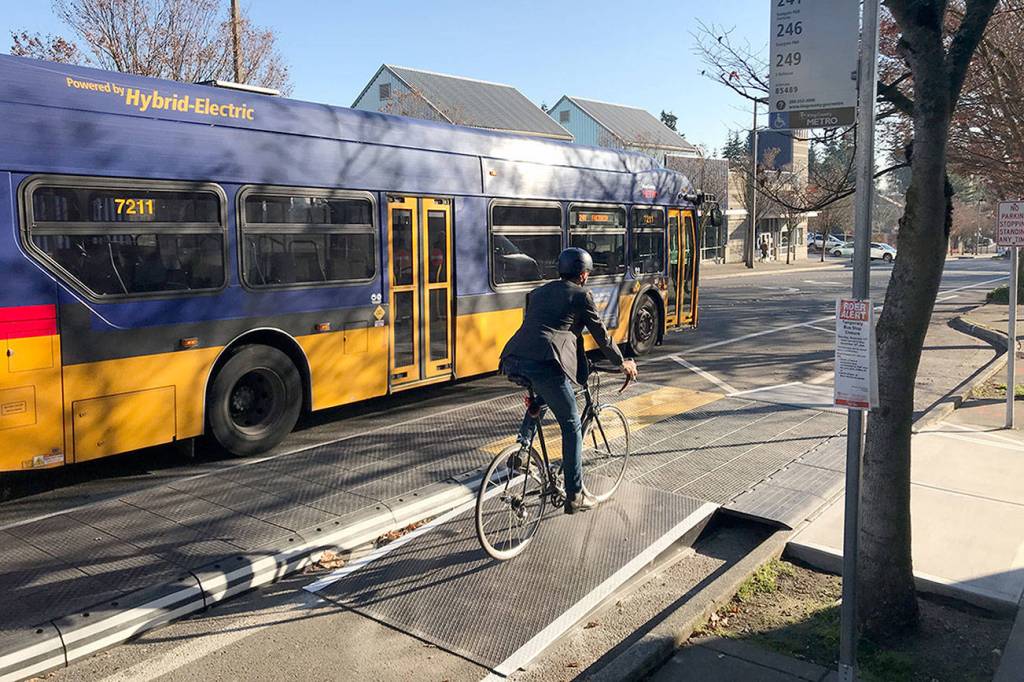 Bellevue’s newest bus platform is the latest in a series of projects to create safer and efficient improvements to bike lanes in the city.