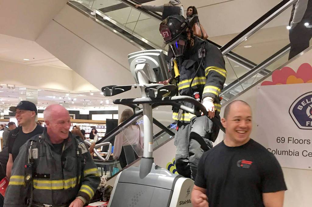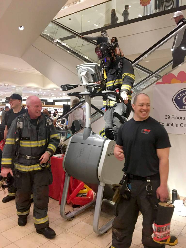 You may be wondering why Bellevue firefighters were at the downtown QFC during Superbowl (Feb. 3) weekend. Or why they had a stair climber set up in Nordstroms.