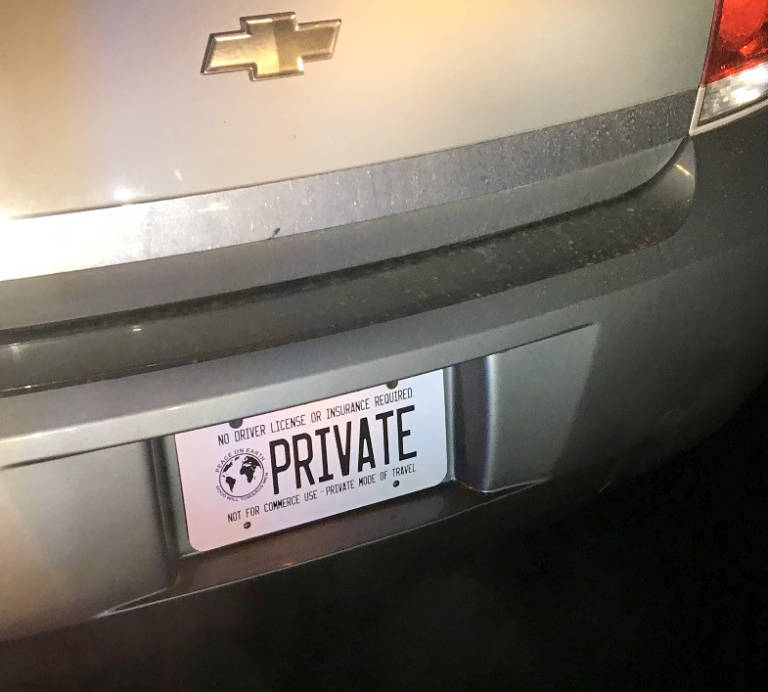 Sovereign citizen: At 12:21 a.m. in the 15000 block of Southeast 38th Street, a suspect was stopped after the officer observed “Sovereign Citizen” license plates on the vehicle. They displayed the word “private” in large letters. The suspect then refused to provide their identification, registration or car insurance. The officer discovered the car was unregistered and the suspect refused to exit the vehicle after being asked to multiple times. They were arrested for criminal traffic offenses and for obstruction.