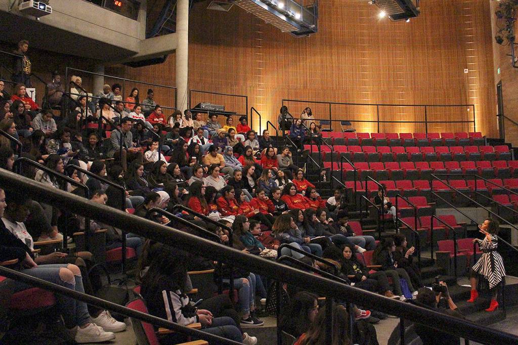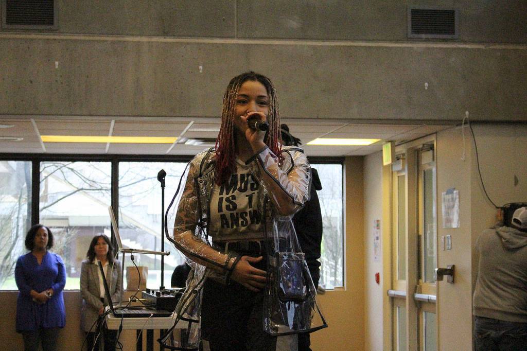 The day began with a welcome from Christian Paige, an equity specialist for the school district, in the cafeteria. Destiny Roberts, a hip-hop and neo-soul influenced singer performed songs from her upcoming album. According to Roberts, she’s intentional with her lyrics and wants to inspire girls to be the best they can be.
