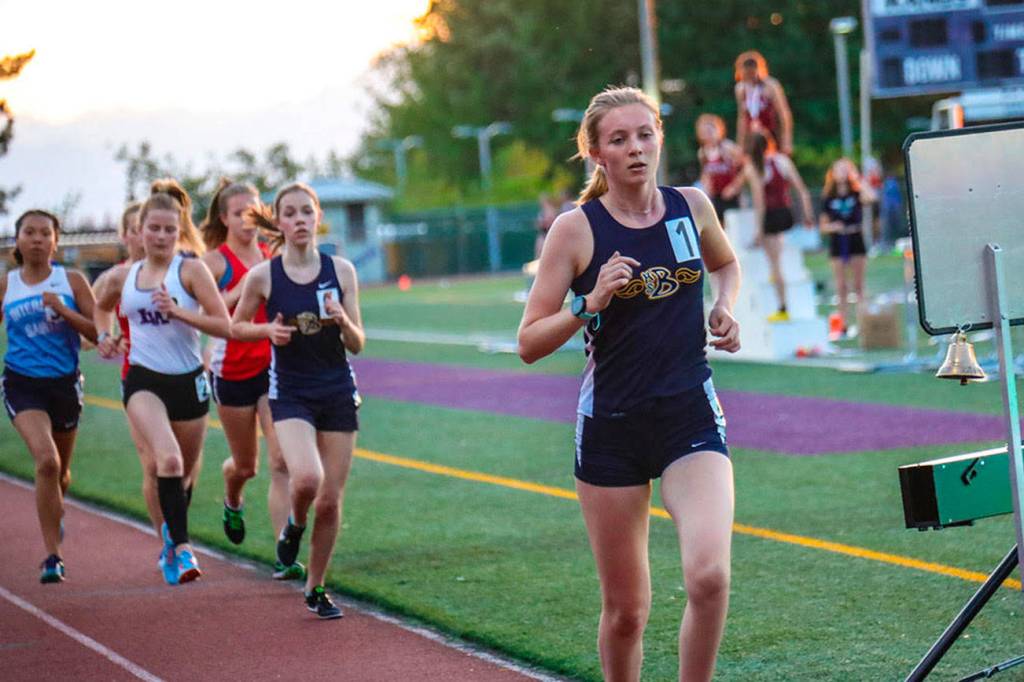 Bellevue Wolverines junior Katherine Forsberg captured first place in the girls 1,600 (5:21.6) and 3,200 (11:29.42) at the 3A KingCo championship track meet, which took place from May 8-10 at Lake Washington High School in Kirkland.