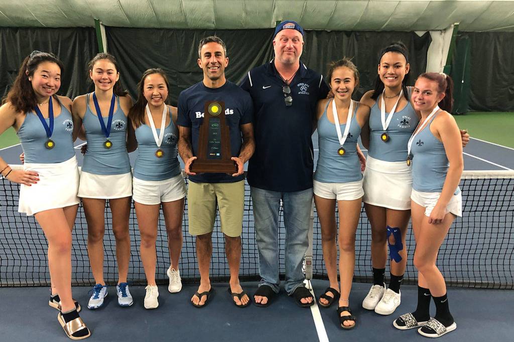 The Interlake Saints girls tennis team earned first place, tallying 35 team points at the 3A state tennis tournament on May 24 at the Tri-City Court Club in Kamiakin.