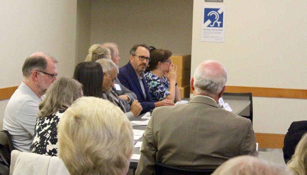 Staff photo/Blake Peterson                                Paul Cornish (center), the project director of the Bus Rapid Transit program, spoke on behalf of Sound Transit at the Sept. 10 meeting.