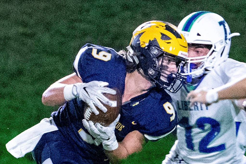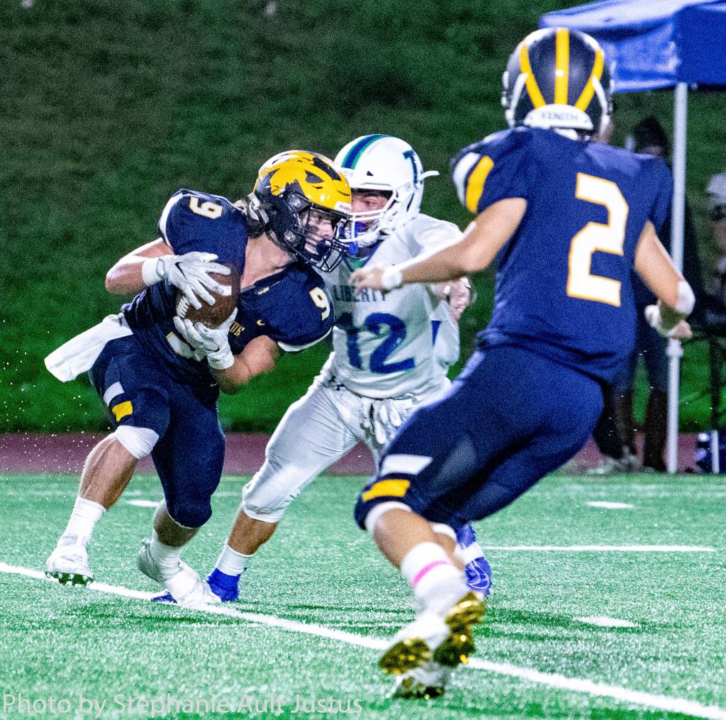 Bellevue running back Joby Schneider carries the ball during the Wolverines’ 42-7 win over Liberty on Oct. 18. Photo courtesy of Stephanie Ault Justus