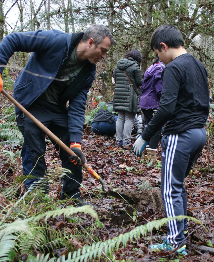 Father and son Jose and Joaquin Garcia plant a tree at Wilburton Hill Park in Bellevue as part of the Dr. Martin Luther King Jr. Day of Service on Jan. 20. The event was hosted by the Natural Resources Division of Bellevue Parks & Community Services and was led by EarthCorps members. Andy Nystrom/ staff photo