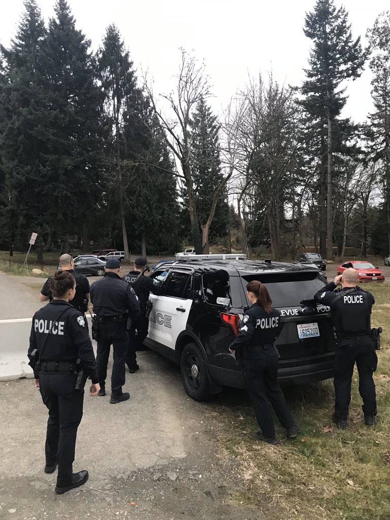 Black said the man, who is “not a Bellevue College student or faculty,” was incoherent and as of 8:15 p.m. Thursday, is still barricaded inside his vehicle. Bellevue police is currently negotiating with him, she said, after delivering a cell phone to him at about 8 p.m. The man’s cell phone had run out of batteries. The phone was delivered via a bomb squad robot, Black said.