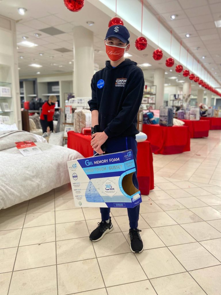 The 14-year-old Mercer Island High School freshman — who is in complete remission from Non-Hodgkin’s lymphoma — said the patients were with him in spirit during his Make-A-Wish Alaska and Washington morning shopping visit to pick out pillows and additional items for comfort kits/gift bags. The care packages, which he will deliver later this year during national Believe Week, are for 25 patients in the oncology ward and the nursing staff.