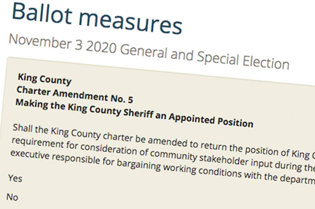These amendments have been a long time coming, as a charter review work group was formed in 2018 to examine ways to update the charter. A list of recommendations was drafted and ultimately sent to voters on Nov. 3. Many deal with the King County Sheriff’s Office’s authority and oversight.