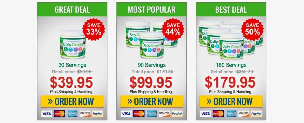 Consumers can order Daily Greens from the official website only, and there are several options for anyone that wants to start using the formula. Choose from: