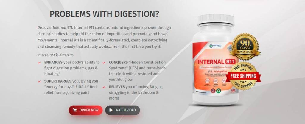 Internal 911 is a digestive health supplement that reduces bloating and gas, healing the gut’s damage that can prevent optimal absorption of various nutrients. The scientifically-formulated product is made by PhytAge Laboratories and includes “10 powerful unique ingredients” meant to remove toxic buildup from the colon and digestive tracts.
