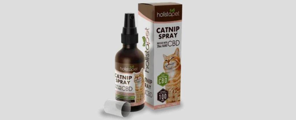 Catnip Spray with CBD ($23.95): HolistaPet has infused a catnip spray with 20mg of nano CBD, which they claim is equivalent to a 100mg dose. Because it uses nanotechnology, the spray has smaller particles of CBD that may be easier for your cat to absorb. You spray the HolistaPet Catnip Spray with CBD directly onto toys, scratching posts, and other items.