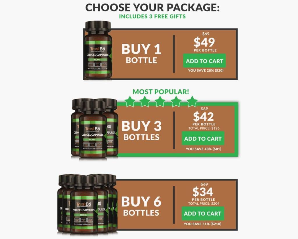 The official TrustBo website offers a limited supply of these bottles, which is why they only have three packages currently available to them, which include: