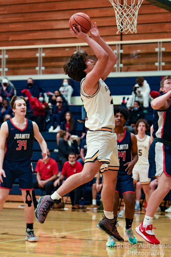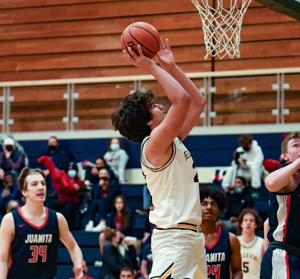 Bellevue’s Tom Nash scores a basket during the Wolverines’ 76-41 boys basketball victory over Juanita on Jan. 5. Photo courtesy of Stephanie Ault Justus