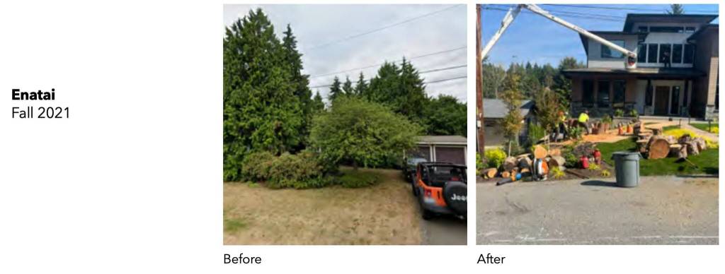 “What we’re seeing is developers come in, they buy a home, they literally clear the lot from end to end—even though Bellevue says you have to retain 15% of the trees in an individual development, or 30% of the trees in a subdivision situation,” said English. “They often don’t do that, and enforcement is very lax, and penalties are very lax. The city isn’t enforcing what they have now, and what they have no is the weakest in the region.”