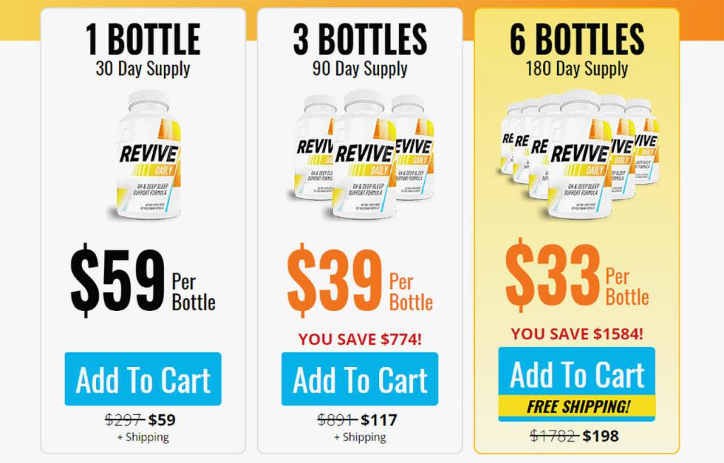Here are the prices for Revive Daily as currently listed on the product website: