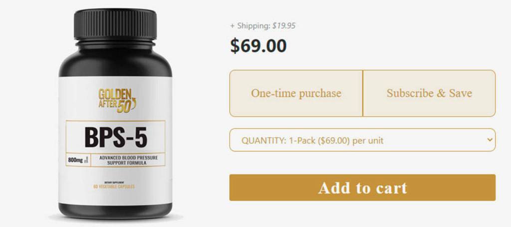 BPS-5 by Golden After 50 is a daily blood pressure remedy that uses a proprietary blend of five ingredients to keep the heart and cardiovascular system healthy.