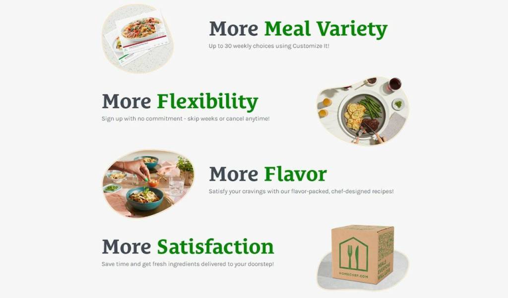 Consumers have many different options, depending on how much work they want to do to get a meal on the table. While consumers can choose from a list of meals, their particular preferences determine which ones are shown to them to choose from. While some consumers prefer that the recipe is ready to warm and eat, they can also get fresh ingredients already portioned out to cook the meal. When consumers sign up for Home Chef, they can access a subscription service that sends an insulated box of meals.