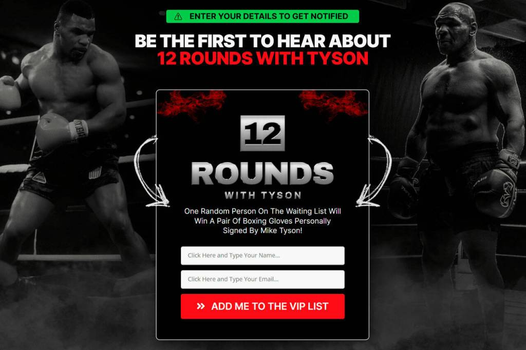 12 Rounds With Tyson is a digital guide that helps users to improve their success in whatever they do. The program is a personalized description of Mike Tyson’s rise to fame, fall, and subsequent rise again.