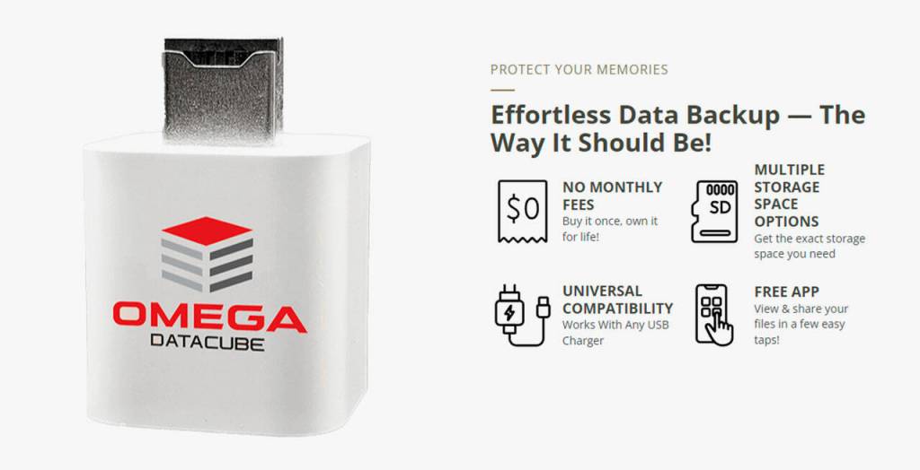 Unlike common cloud backup solutions, the Omega DataCube only needs a single payment. People can use the Omega DataCube and the free app forever after making the initial purchase for no additional charge! It is crucial to keep in mind that the memory card will need to be replaced once storage is full, which will incur a cost.