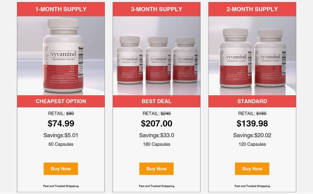 - Order one bottle of Vyvamind for $74.99, saving $5 off the regular retail price of $80.