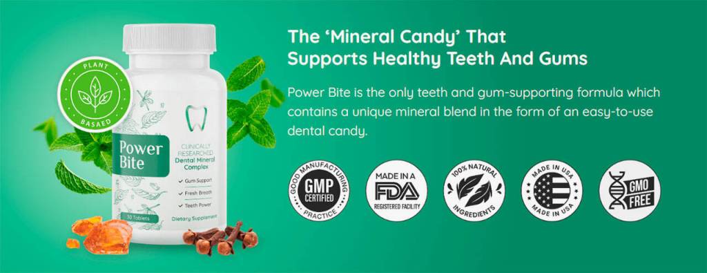 Power Bite is a mineral candy that has been designed by health experts to promote the health of your gums and teeth. This mineral-rich dental candy features a blend of unique ingredients that have all been proven to support healthy gums and teeth. Power Bite comes in the form of easy-to-use dental tablets that can be eaten by anyone easily.