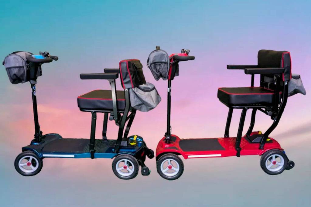 Cruise Skooter Air is available in red and blue colors. It is four-wheeled, featuring wheels with strong traction, and unlikely to deflate. The mobility scooter is super light and foldable. It can fit the trunk, metro, tour buses, and other storage spaces without any hassles.