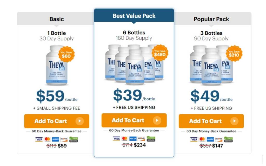TheyaVue promises to maintain and improve the health of your eyesight. It is available on the official website at a discount of up to $480, allowing you to get as many bottles as you want. Here is how its pricing breaks down: