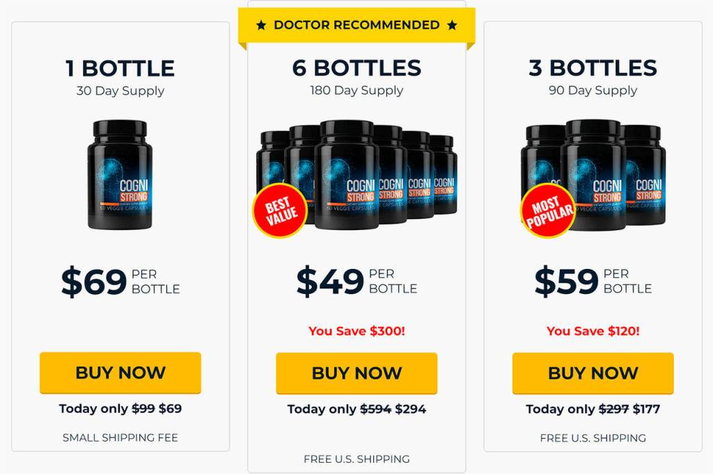 Found exclusively on the official website, users can get CogniStrong for a relatively low price. Users who commit to long-term use tend to see the best results and have access to the lowest price possible. Each package offers a different quantity, but consumers who buy in bulk pay the least for their bottles.