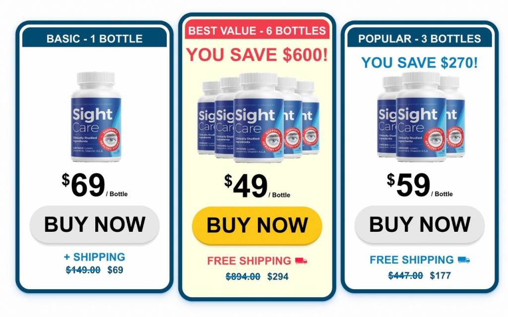2. Popular Package – 3 Bottles: The Popular Package is priced at $59 per bottle, with the added benefit of free shipping. Customers opting for this package will receive three bottles of SightCare at a total cost of $177, allowing for savings compared to purchasing individual bottles.