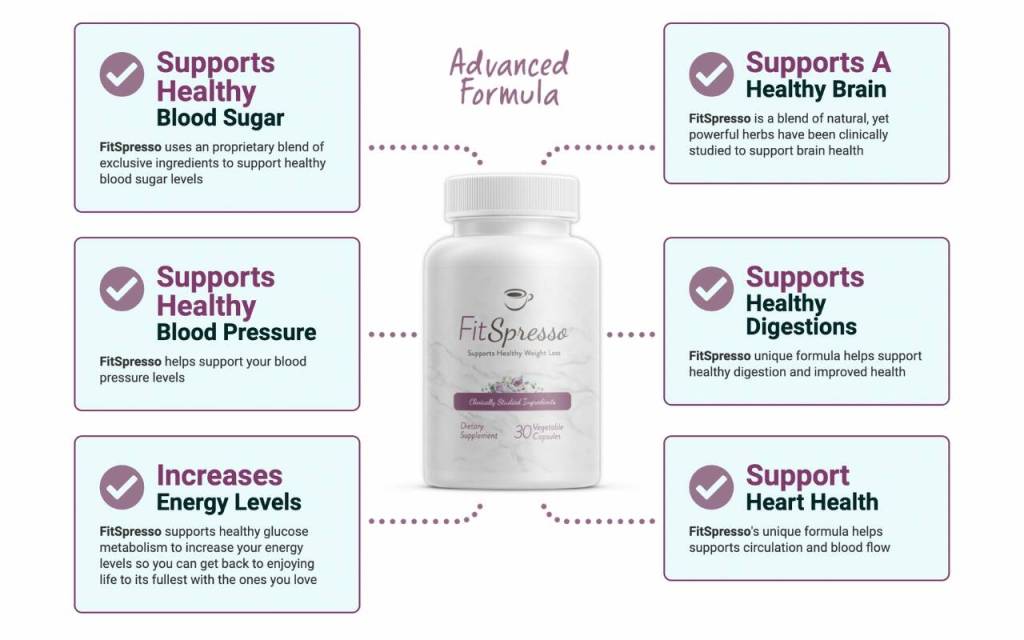 FitSpresso increases energy levels, improves overall health, and supports functions like blood sugar levels, brain health, blood pressure, digestion, and heart health.