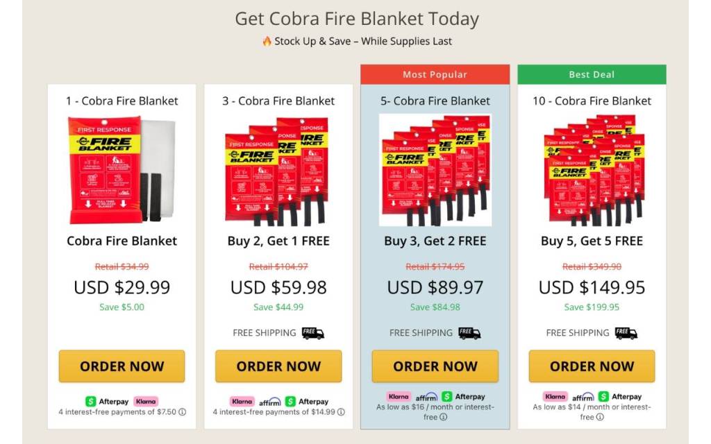 The Cobra Fire Blanket is available through multiple purchase channels ensuring customer convenience and product authenticity. Official website purchases guarantee genuine products with full warranty coverage and customer support access.