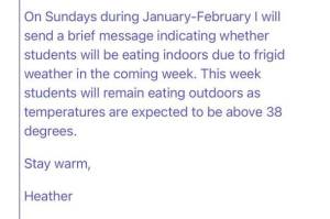 Lakeview Elementary students must eat lunch outside during winter cold