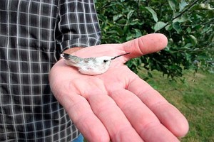 Rare white hummingbird visits area