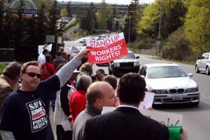 More than 100 former employees, union representatives and others lined the streets outside T-Mobile's Bellevue headquarters to protest…