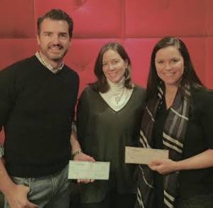Tap House Grill owner Paul Reder and Events Manager Lindsay Bowen presented Lauren Young, senior manager, donor relations…