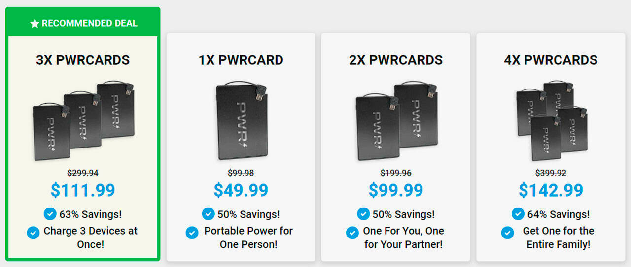 The makers of PWRCard wanted their product to be an affordable option on the market – which is why they offer a decent amount of discount on every package.