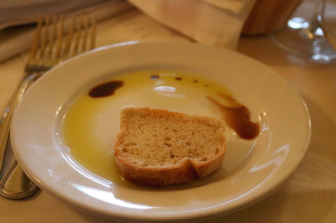“We bake the bread every morning, with a recipe from Sicily,” Sal explains, gesturing at a basket of warm, aromatic bread next to bottles of olive oil and vinegar.