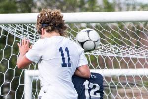 The Wolverines added an insurance goal courtesy of Carson Wachter’s header goal (pictured) off of a corner kick from Ryan Tobin in the 71st minute, extending the lead to 2-0. Photo courtesy of Stephanie Ault Justus
