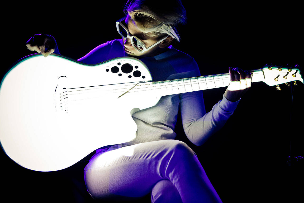 The unique performance, “The Neck Is A Bridge To The Body,” utilizes projection mapping to cast colorful textures, shapes and “visions of genesis and death” onto King’s guitar, which was customized specifically for the project.