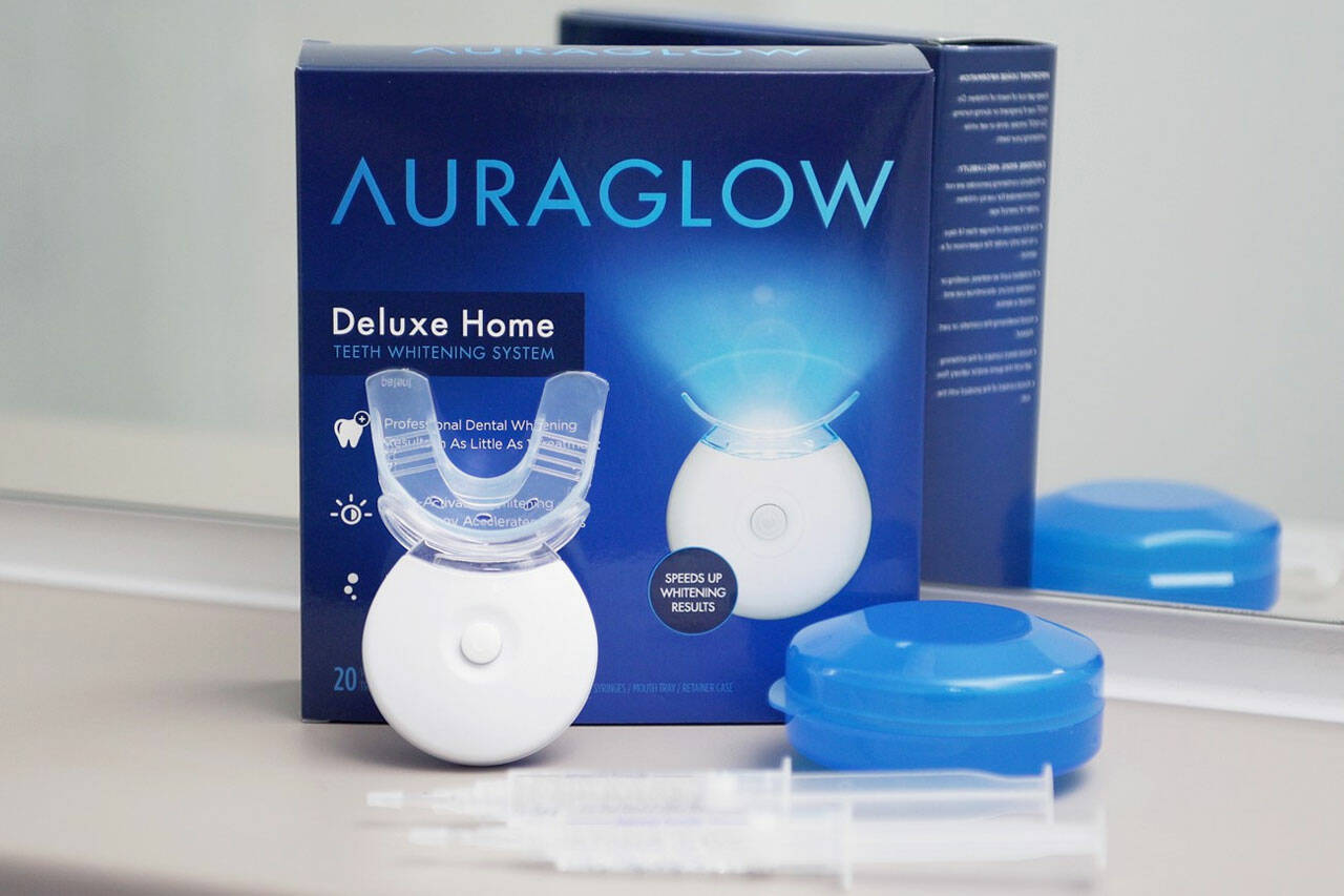 AuraGlow provides users with whitening products that are safe for enamel to protect them during the whitening process. This brand has multiple systems and products, including the Complete LED Whitening Kit. The kit is backed by scientific evidence, using LED light and teeth whitening gel. Most people using the AuraGlow system will see a change within the first few treatments.