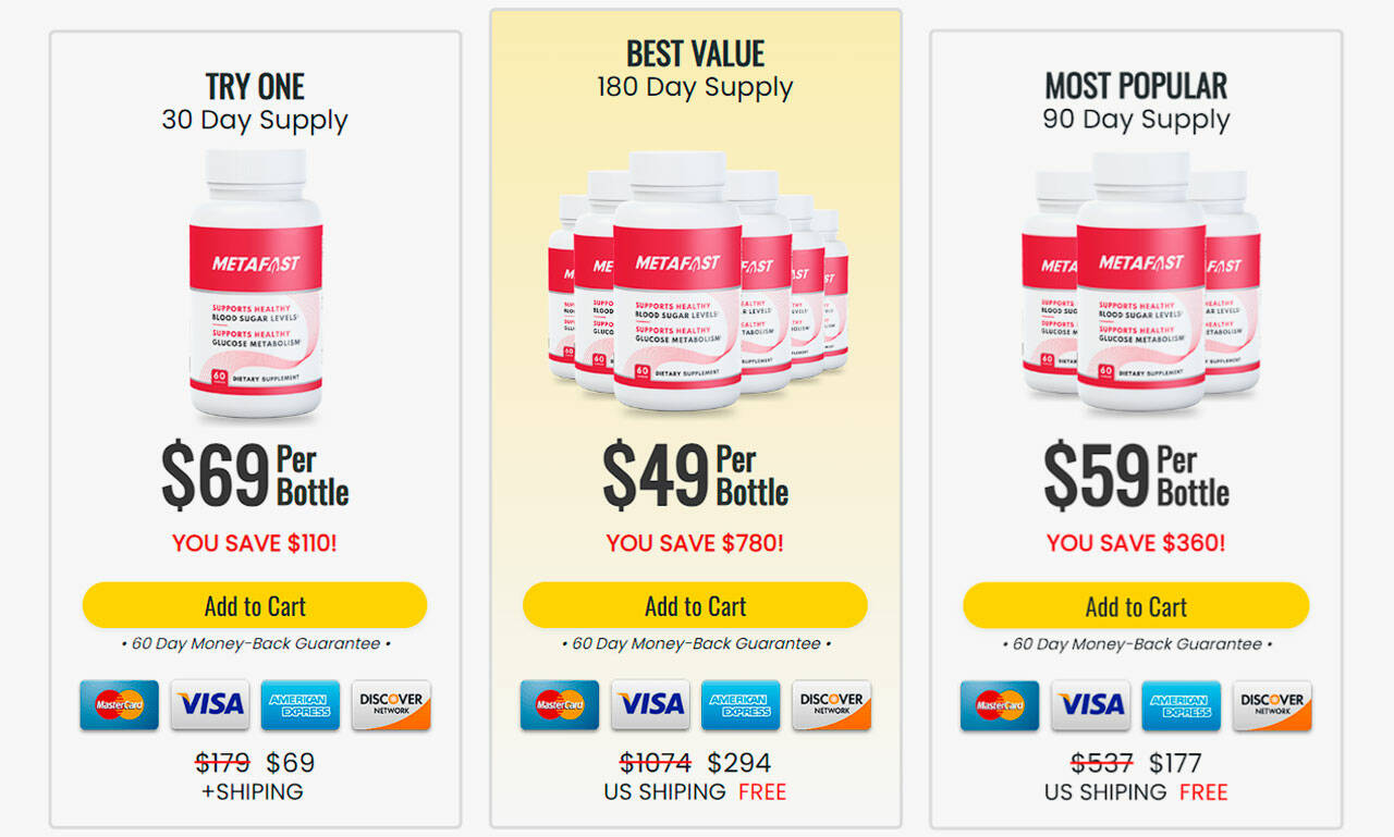 The only way for consumers to purchase Metafast is through the official website. The website includes a few packages, depending on how much of the remedy users want to order at once. The packages include: