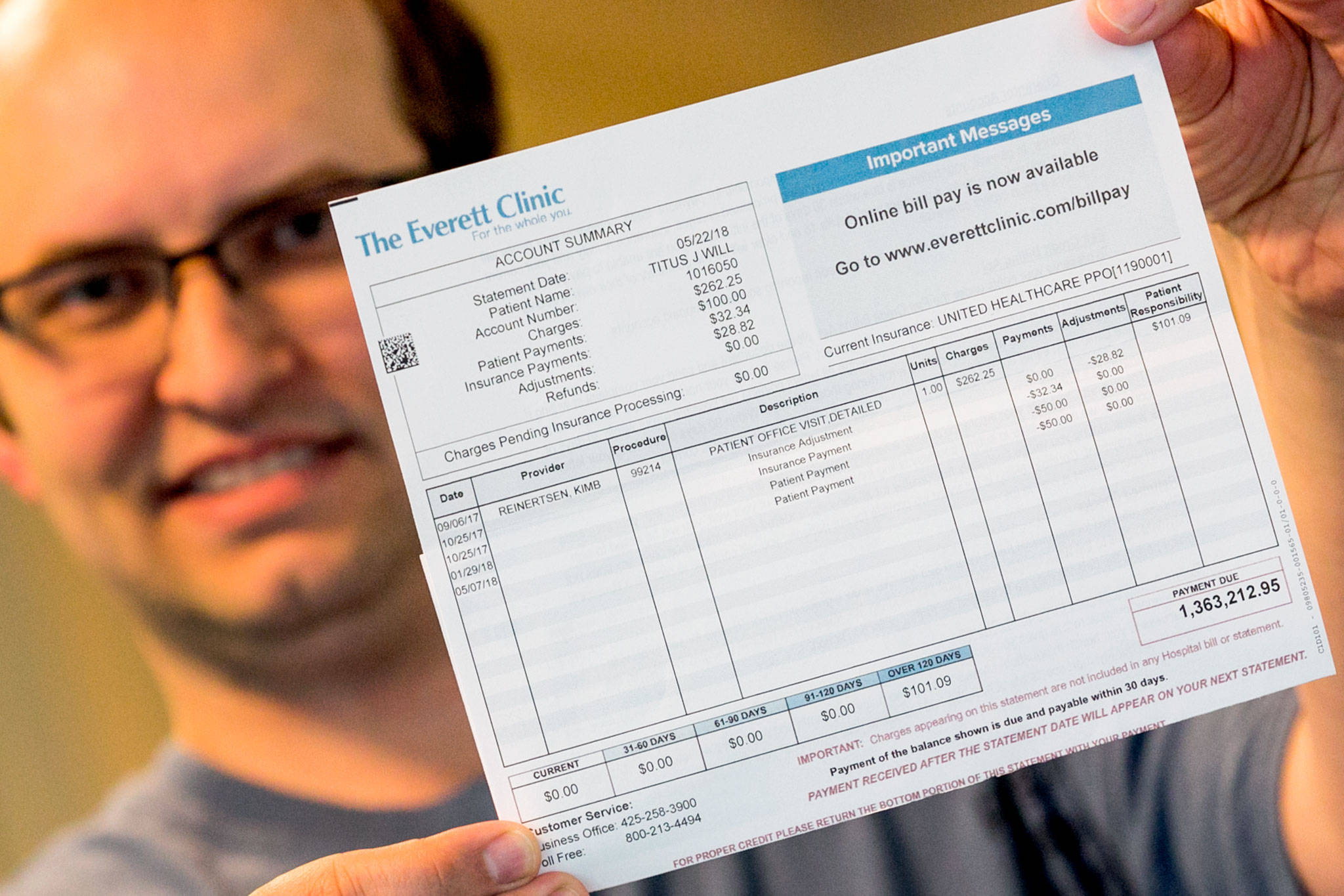 “I was thinking, ‘What would it take to actually get a bill that big?’” he said. “I had my kids through Everett Clinic and the birthing doctor, they were good, but my bill was no more than $3,000.”