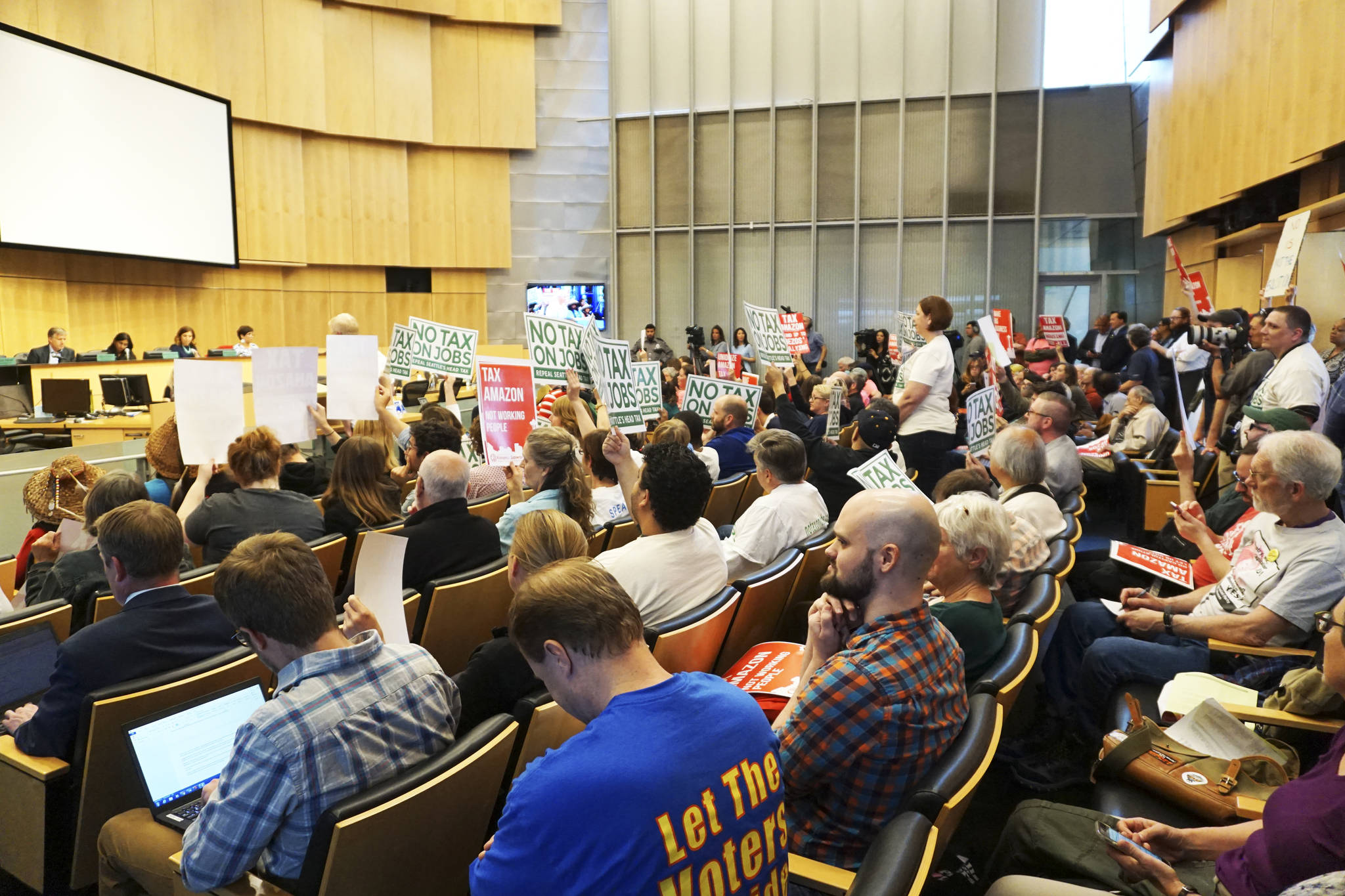 The special meeting was called on Monday, when Council President Bruce Harrell announced that he would sponsor legislation to repeal the contentious tax estimated to generate $47 million annually. The tax that was poised to take effect in January 2019 would have funded homelessness services, emergency shelters, and affordable housing. Tuesday’s repeal followed the successful efforts of the No Tax on Jobs, a group backed by Amazon, Starbucks, Vulcan, and other big businesses which raised over $285,000 to back an effort to collect the 17,632 valid signatures needed to place a head tax referendum on the November ballot.