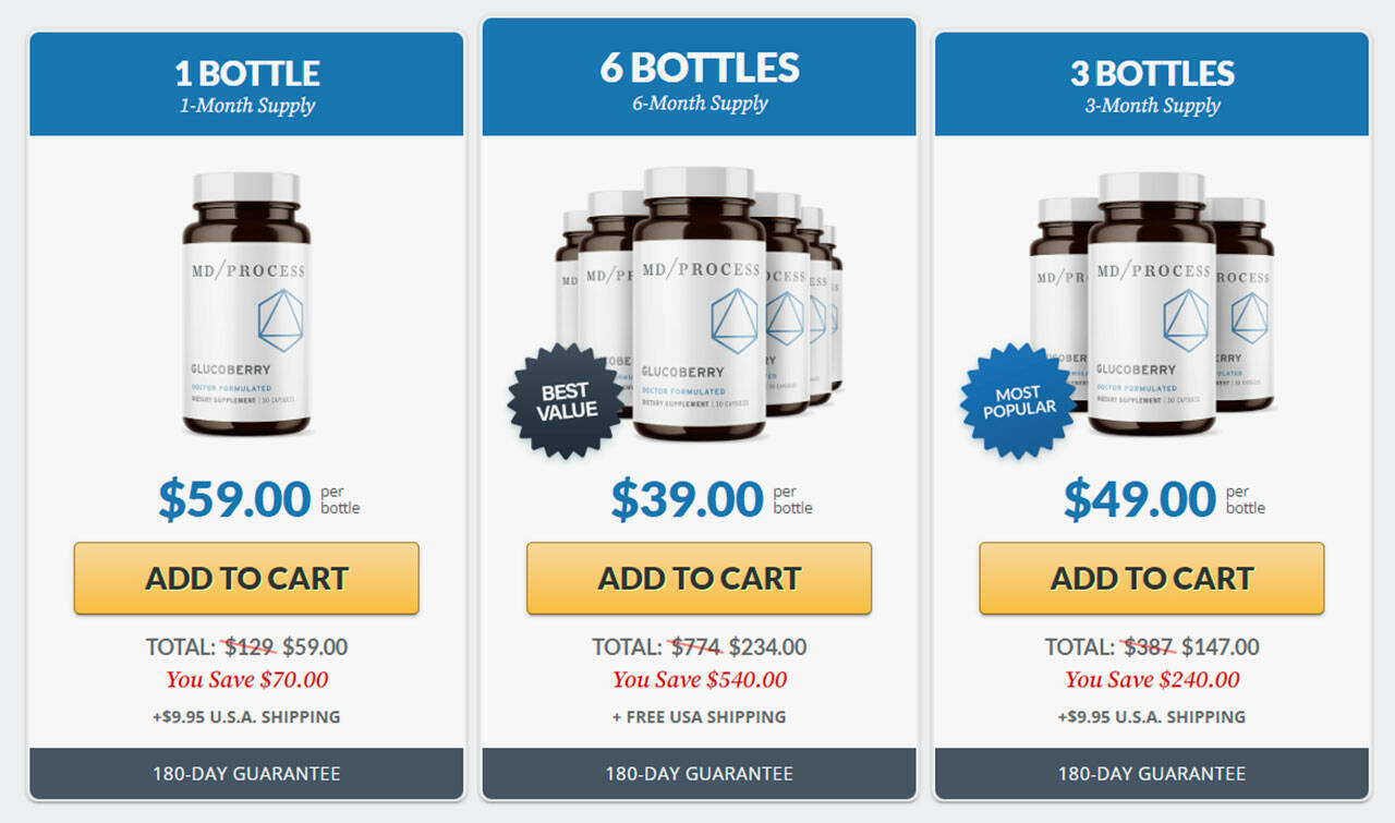 - 3-month supply: On the purchase of a 3-month supply of GlucoBerry, you will be charged $49 per bottle and the total pack will cost you $147 only! Along with this, you’ll need to pay a standard shipping cost.