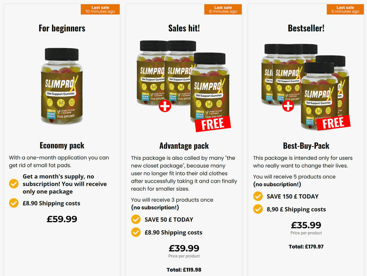 • 3 SlimProX bottles: £39.99 each + £8.90 in S&H